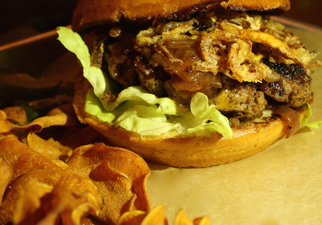Already a few beers in, we finally sat down for some food. We started off with chips and queso, a classic Texas appetizer. The queso comes out in a cast iron skillet surrounded by lard-fried chips made in-house. The queso was great but the chips could stand on their own. For entrees, both Ben and I dove in head first. The Coma Burger came to me big and hot served with crispy sweet potato chips and house-made beer pickles. The patty is ground brisket and bacon, served with bacon on top, crispy shallots and smoked cheddar. Ben got the Turkey Leg which is a muthah!@#$%&* TURKEY LEG! It is served with caramelized apples and the best cornbread you’ve ever had. (And no, not “except for your Grandma’s.” ‘Cause you know what? Your grandma used a mix!)